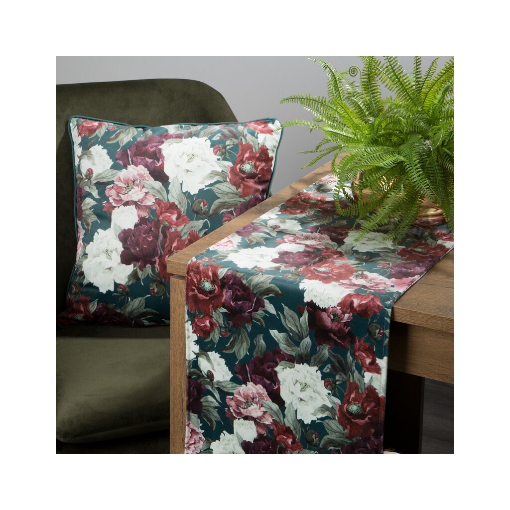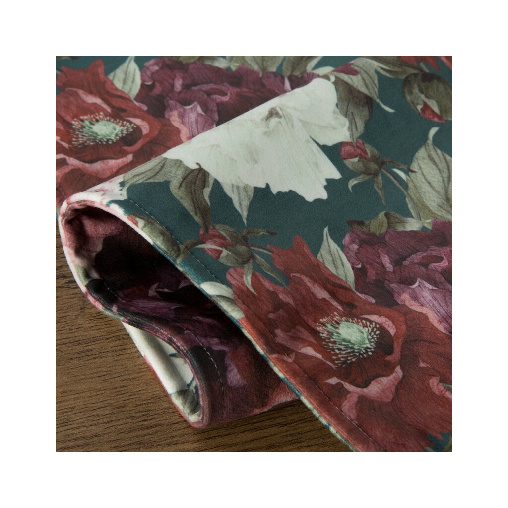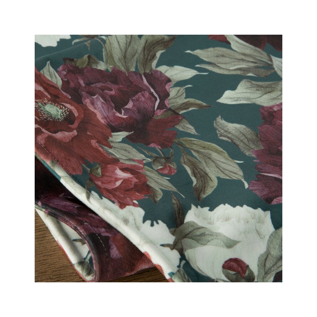 Obojstranný zamatový DEKORAČNÁ ŠTÓLA s kvetinovým vzorom šírka: 35 cm, dĺžka: 180 cm, farba: zelená, hmotnosť: 280 GSM, zloženie: 100 % polyesterDodatočné parametre