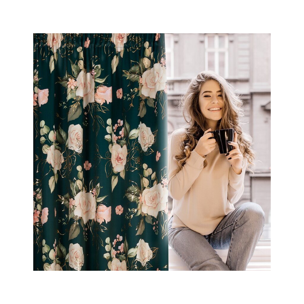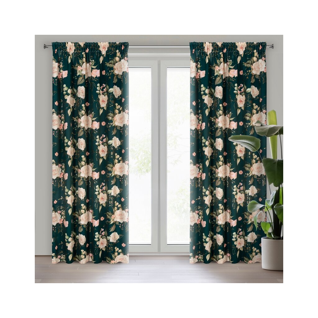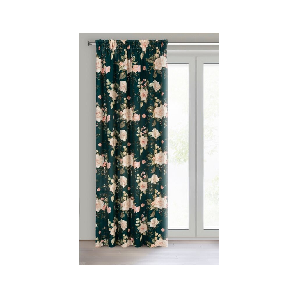 Hotový záves s potlačou v zelenej farbe, motív kvetovýšírka: 135 cm, výška: 270 cm, farba: tmavozelený, Gramáž: 190 GSM, Zloženie: 100% poliester
