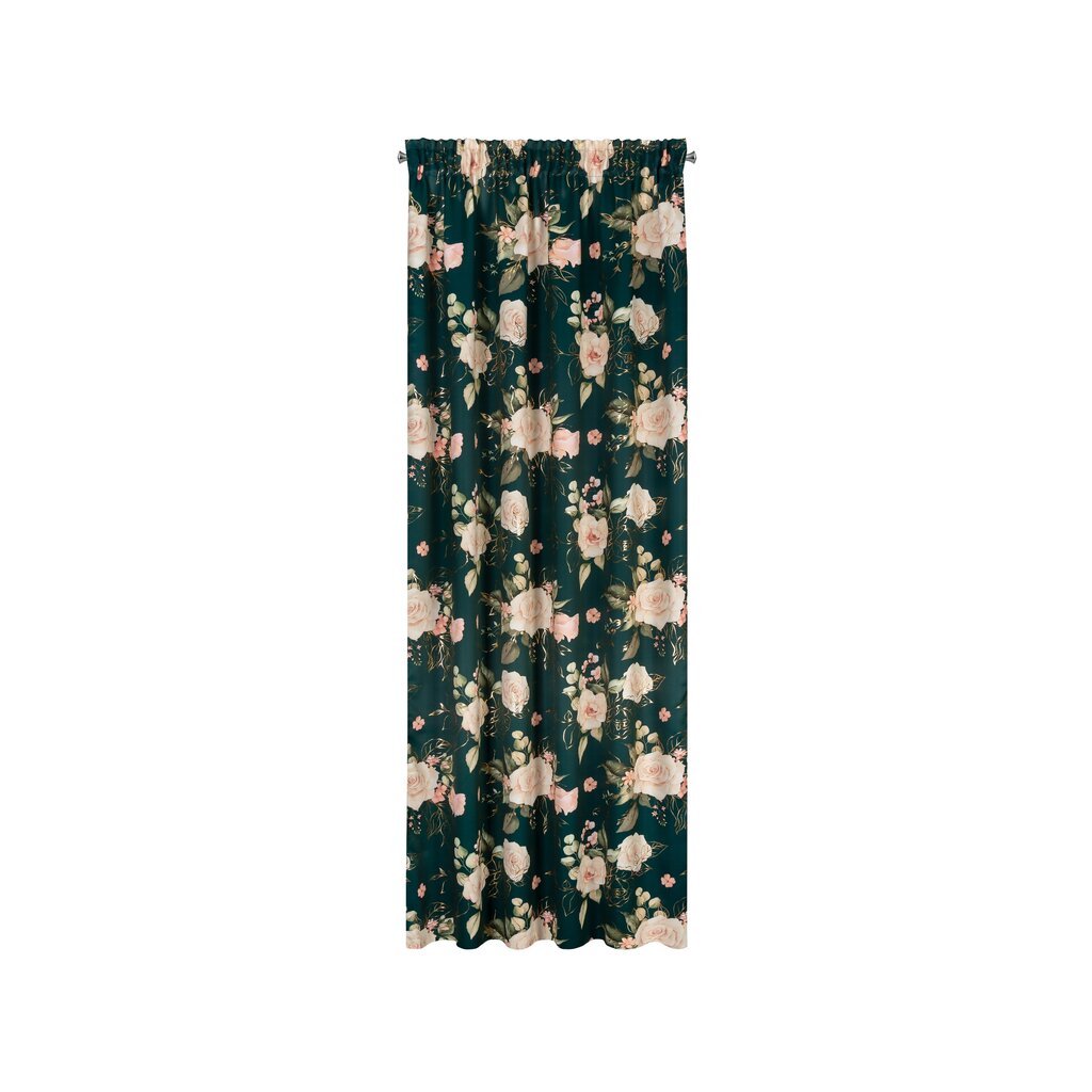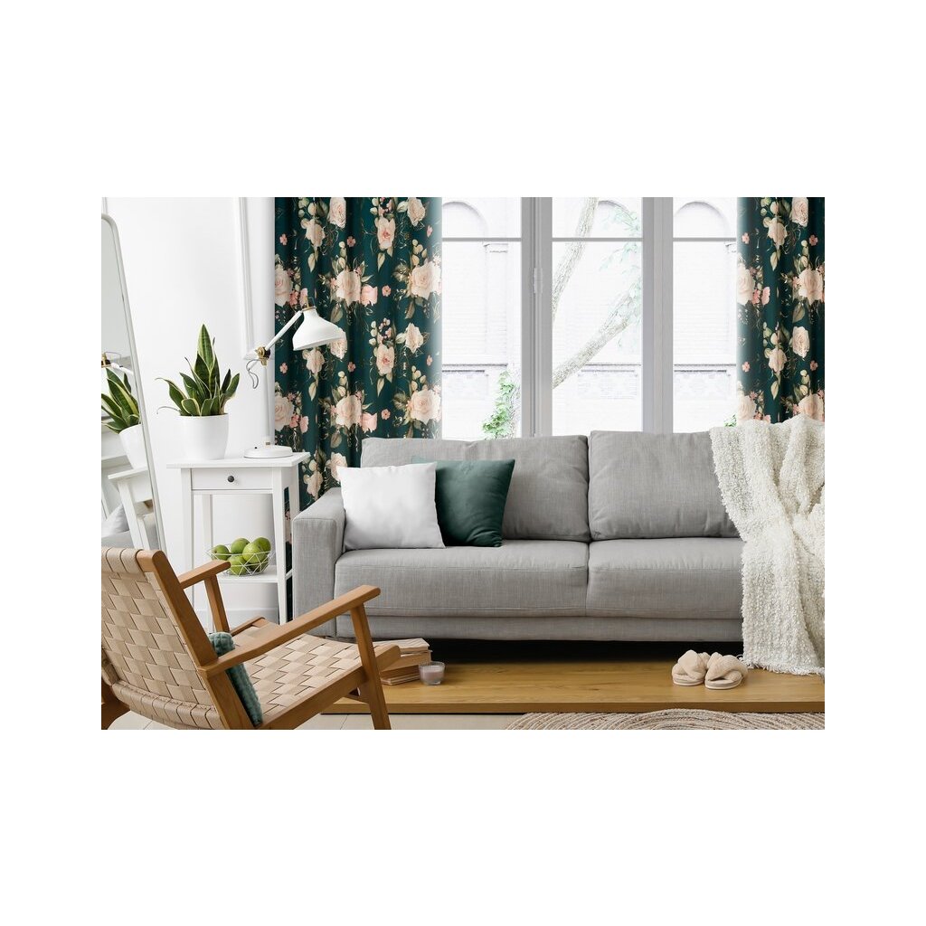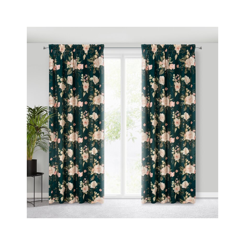 Hotový záves s potlačou v zelenej farbe, motív kvetovýšírka: 135 cm, výška: 270 cm, farba: tmavozelený, Gramáž: 190 GSM, Zloženie: 100% poliester